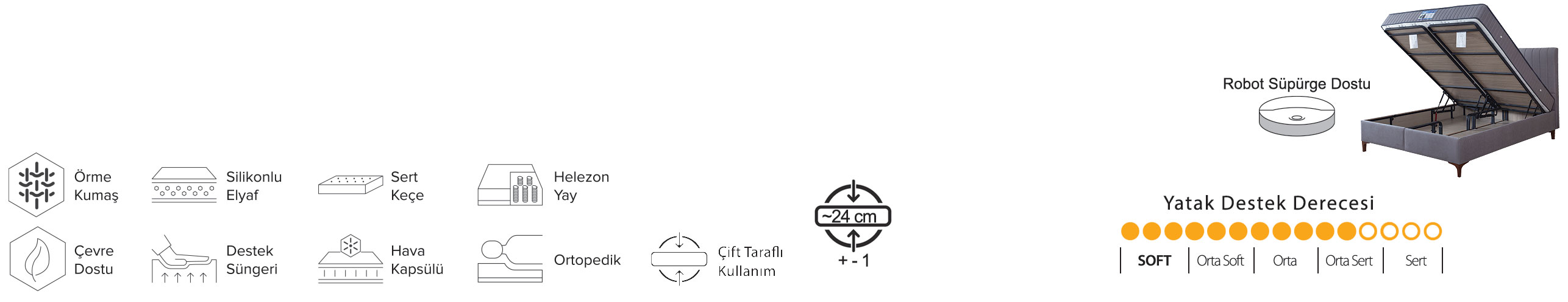 Rahat ve temiz bir yatakta uyumak günün yorgunluğunu ve stresini atmamıza yardımcı olur.Yüksek teknoloji kullanılarak elde edilen orta sert sünger, size ve sevdiklerinize hem temiz hem de çok rahat bir uyku deneyimi sunuyor.