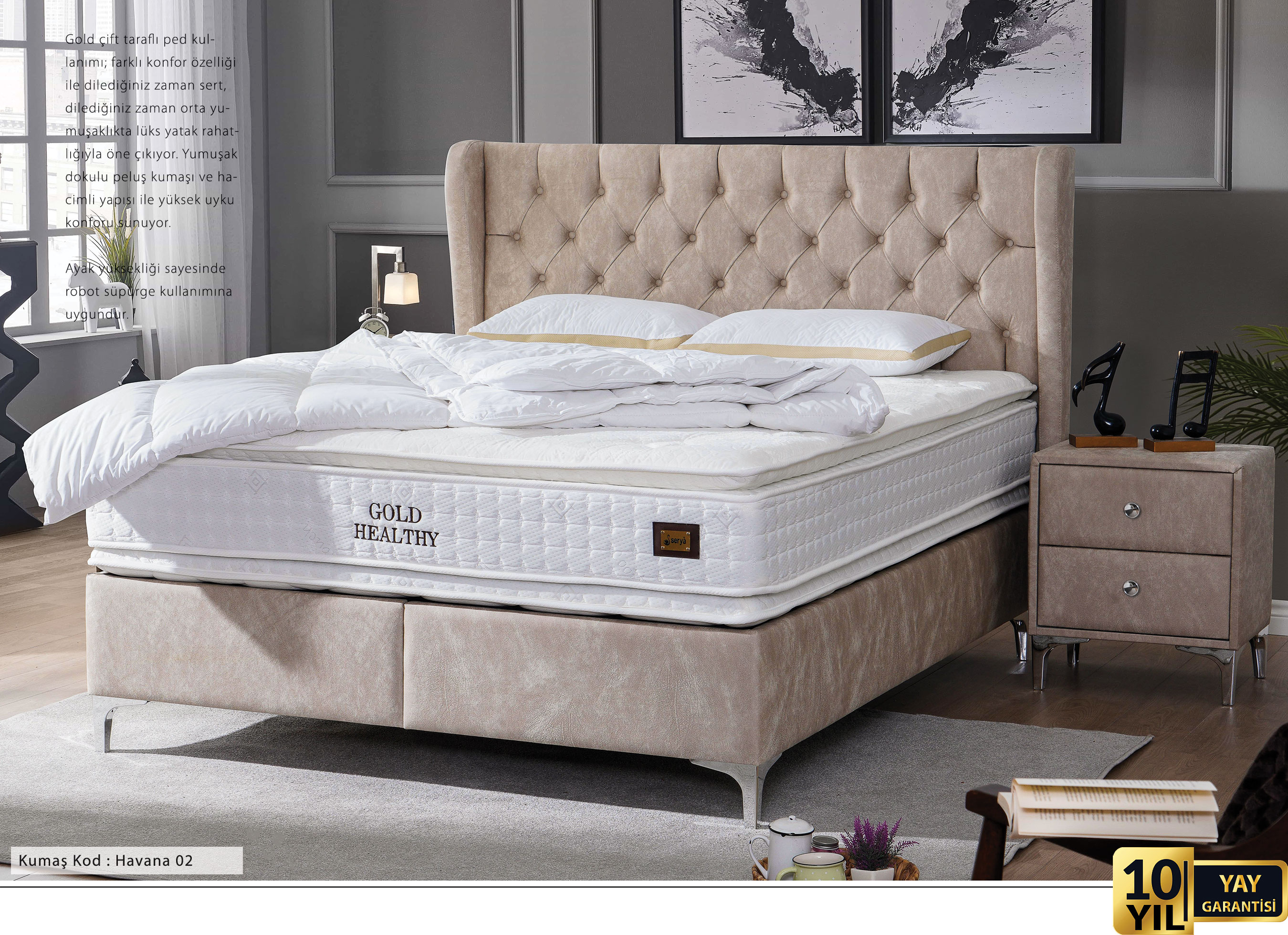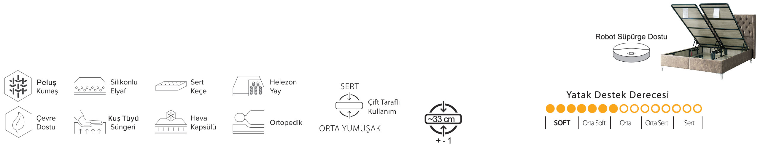 Formunu ve özelliklerini koruyan Peluş , uzun yıllar rahat ve kaliteli bir uyku ortamına sahip olmanızı sağlar. Hafif, doğal yapısının yanı sıra yumuşacık oluşuyla da sanki bulutların üstünde uyuyormuşsunuz gibi hissetmenizi sağlar.