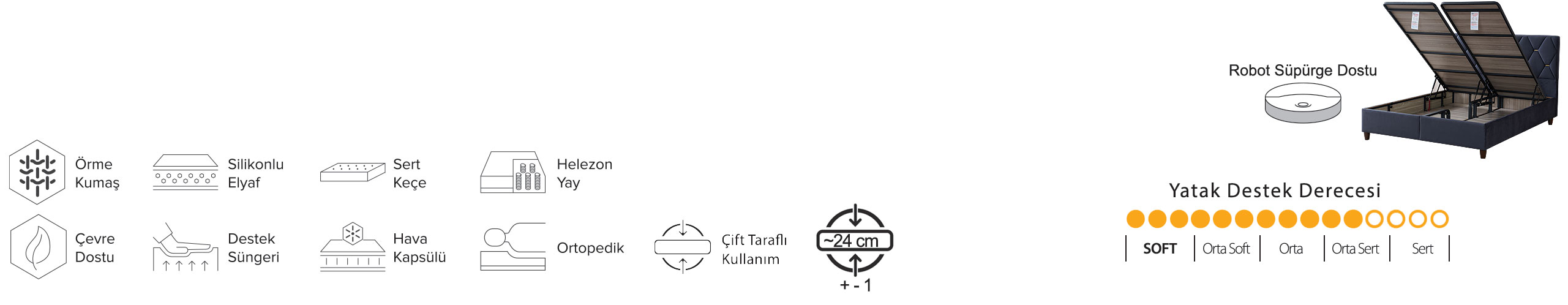 Yatağınızın üst yüzeyinde kullanılan pamuklu örme kumaşın hava geçirgenlik özelliğinin terlemeyi önlemesiyle, ferah bir uyku deneyimi yaşamanızı sağlar.