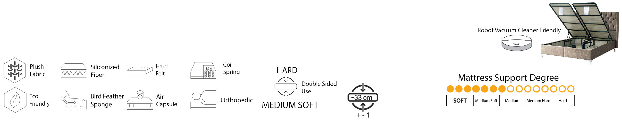 Plush, which maintains its form and features, ensures a comfortable and high-quality sleep environment for many years. Its light, natural texture and softness make you feel as if you're sleeping on a cloud.